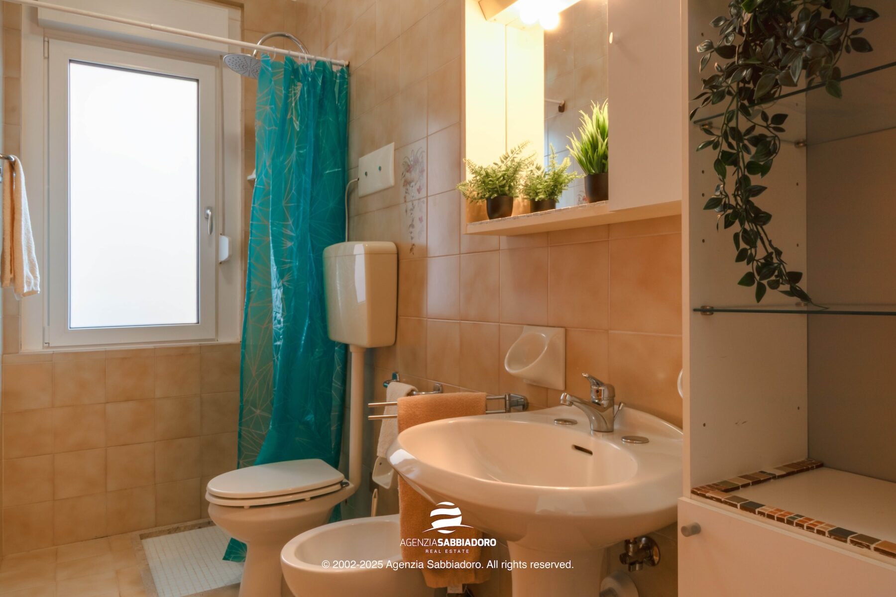 Das fensterbelichtete Badezimmer, großzügig und gut proportioniert, ist mit einer Dusche ausgestattet; die Raumgröße erlaubt bei Bedarf eine zukünftige Umgestaltung zu einer Walk-in-Dusche, ohne bauliche Veränderungen.