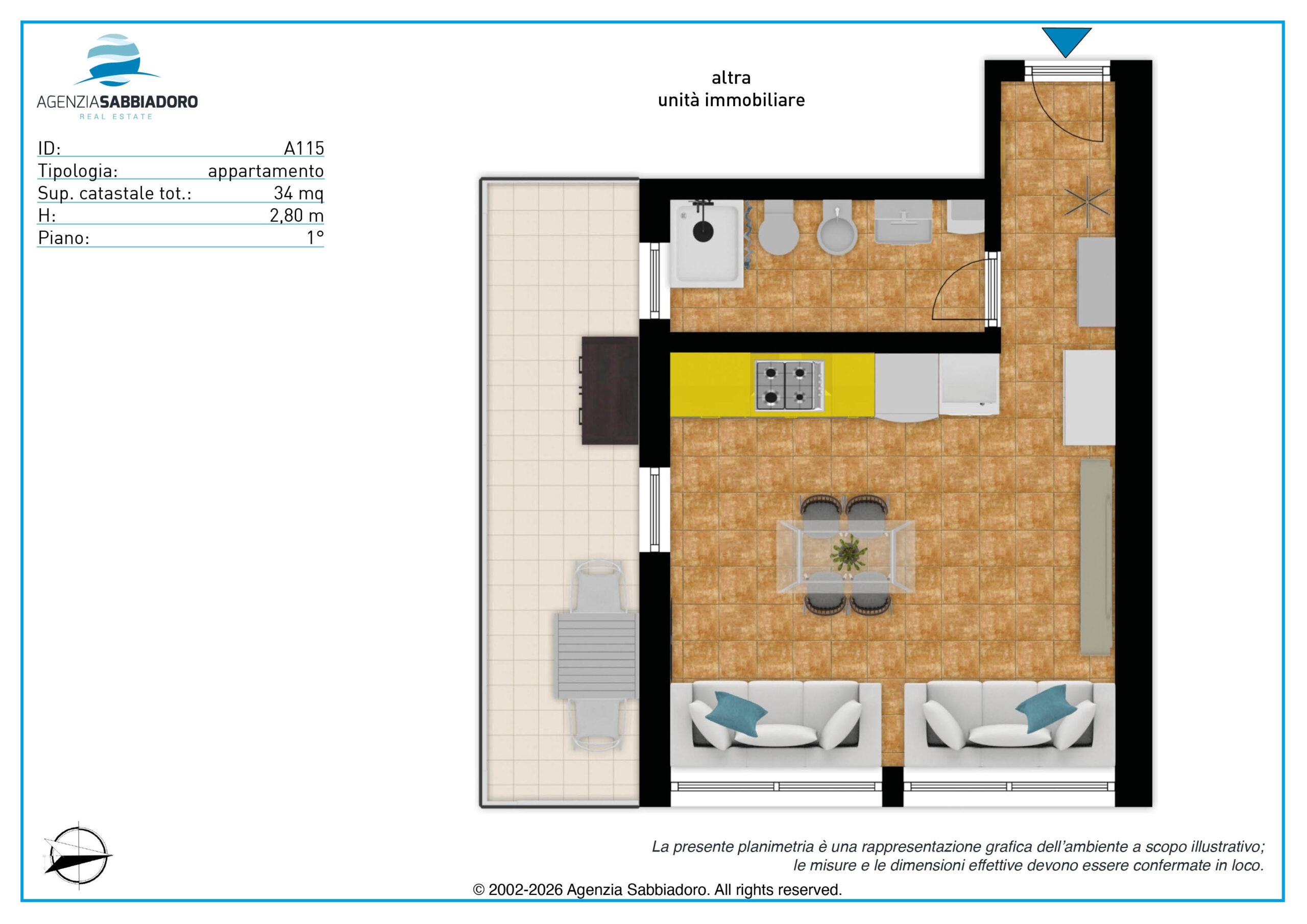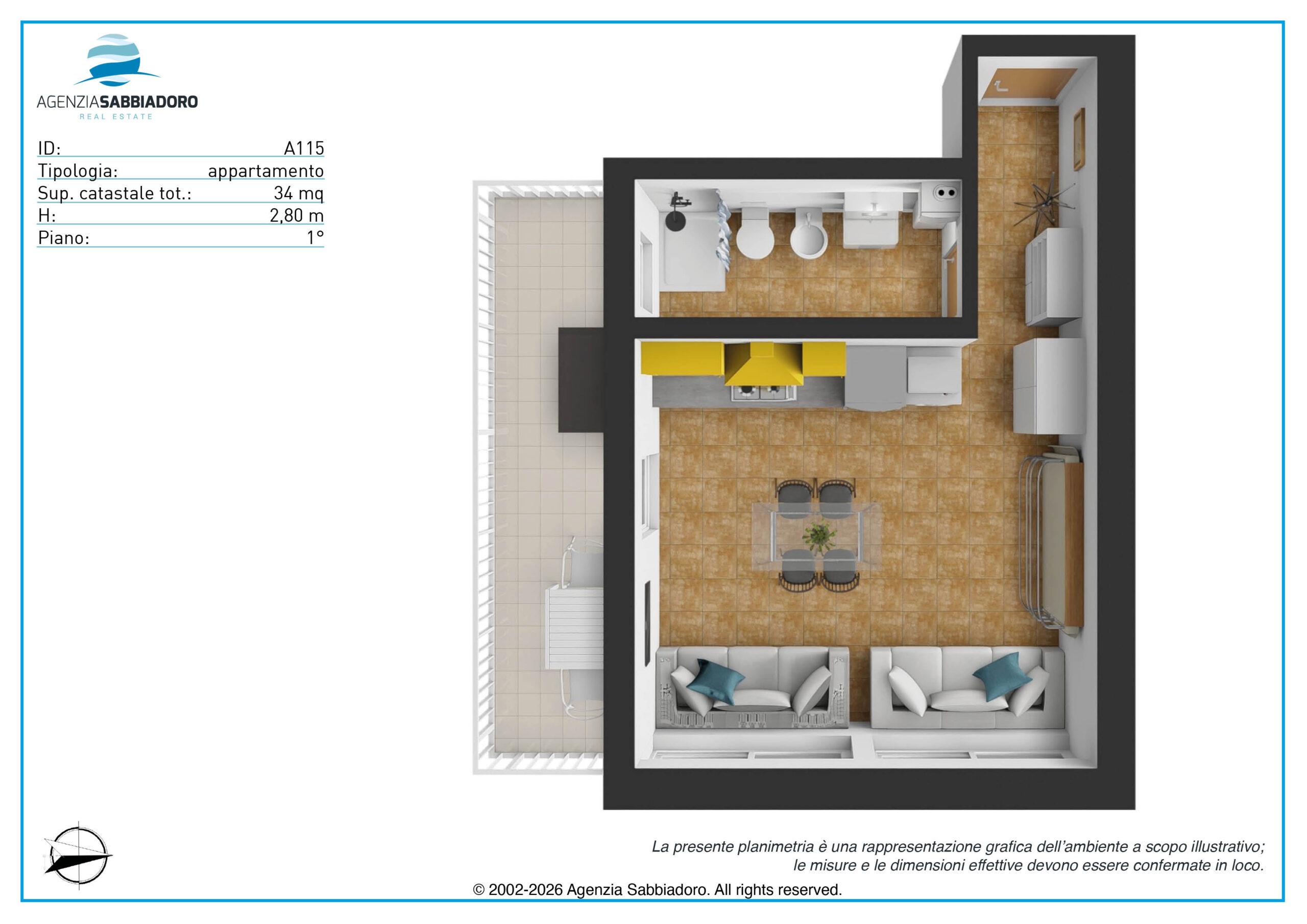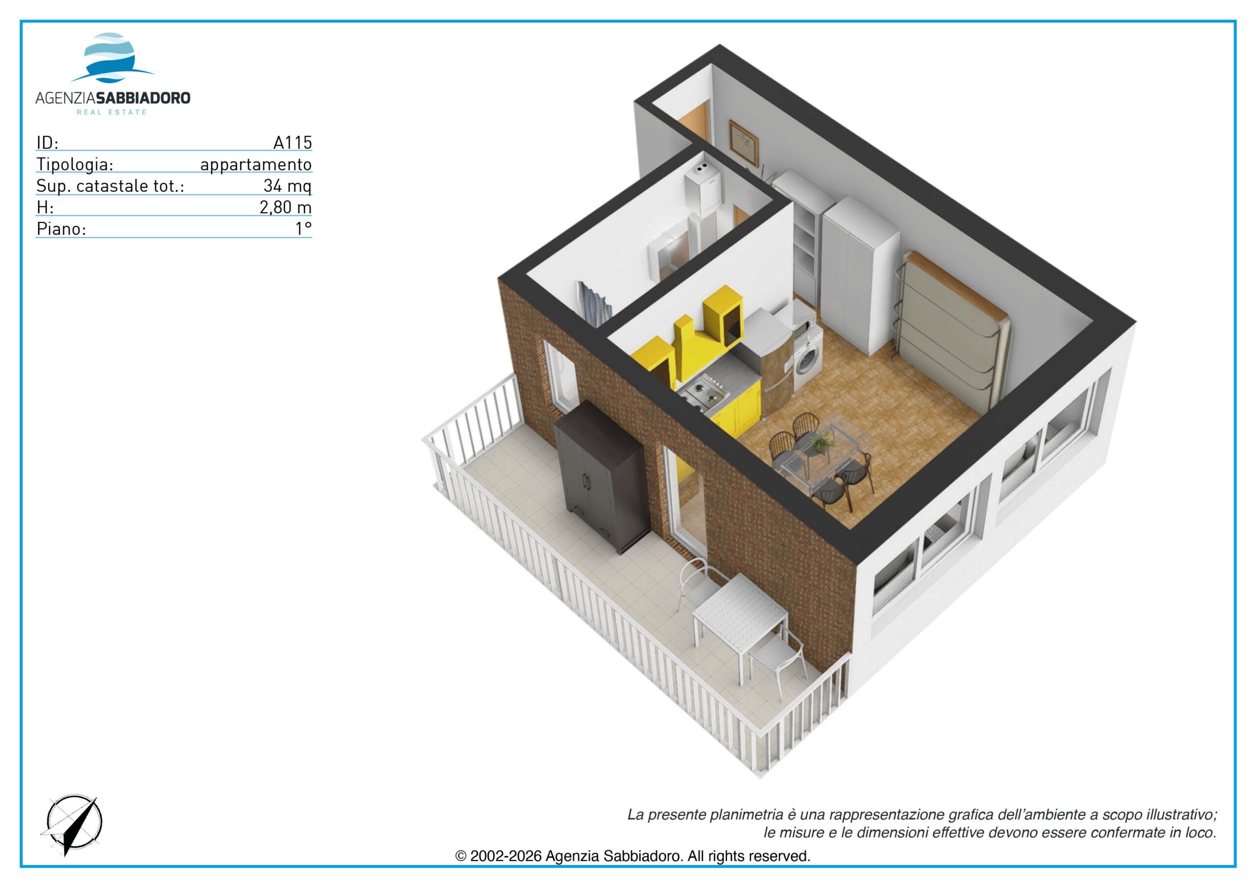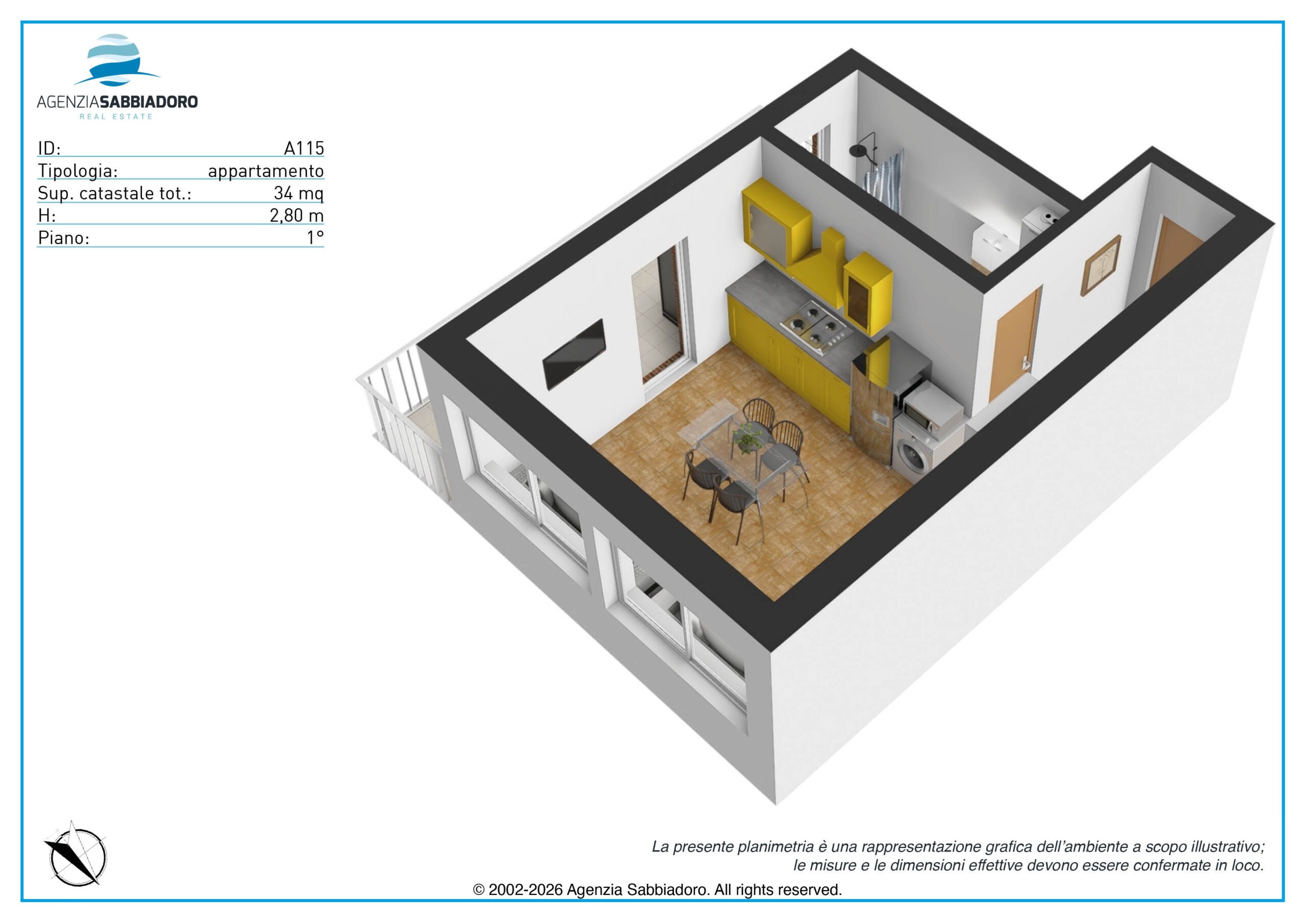 Im Herzen von Sabbiadoro, 100 Meter vom Meer, 100 Meter von der Fußgängerzone und 200 Meter von der Piazza Fontana entfernt, bieten wir ein großzügiges Studio-Apartment in zentraler Lage zum Verkauf an, in der alle Dienstleistungen bequem zu Fuß erreichbar sind.