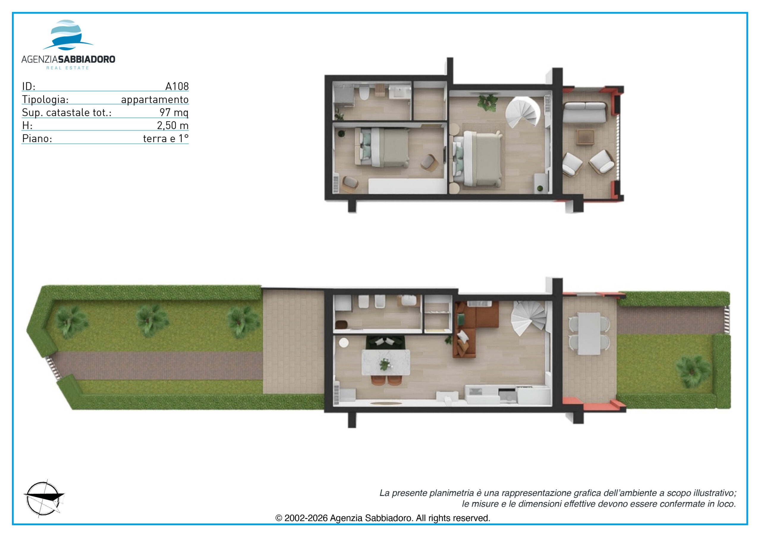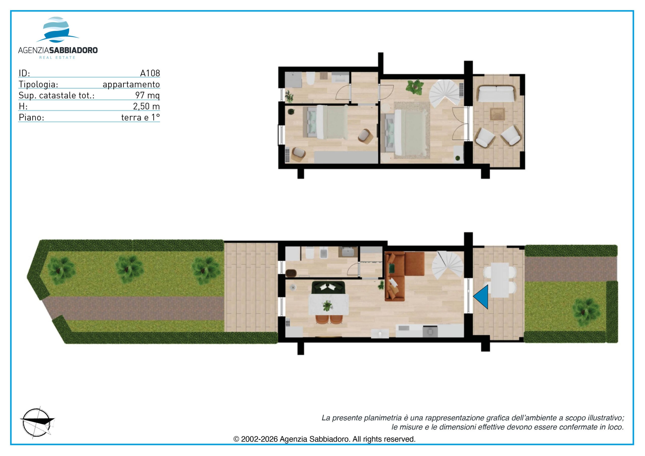 In Aprilia Marittima, innerhalb der Wohnanlage Porto Antico Village, bieten wir ein elegantes Duplex-Apartment mit zwei Schlafzimmern, Wohnbereich im Erdgeschoss und Schlafbereich im Obergeschoss zum Verkauf an.