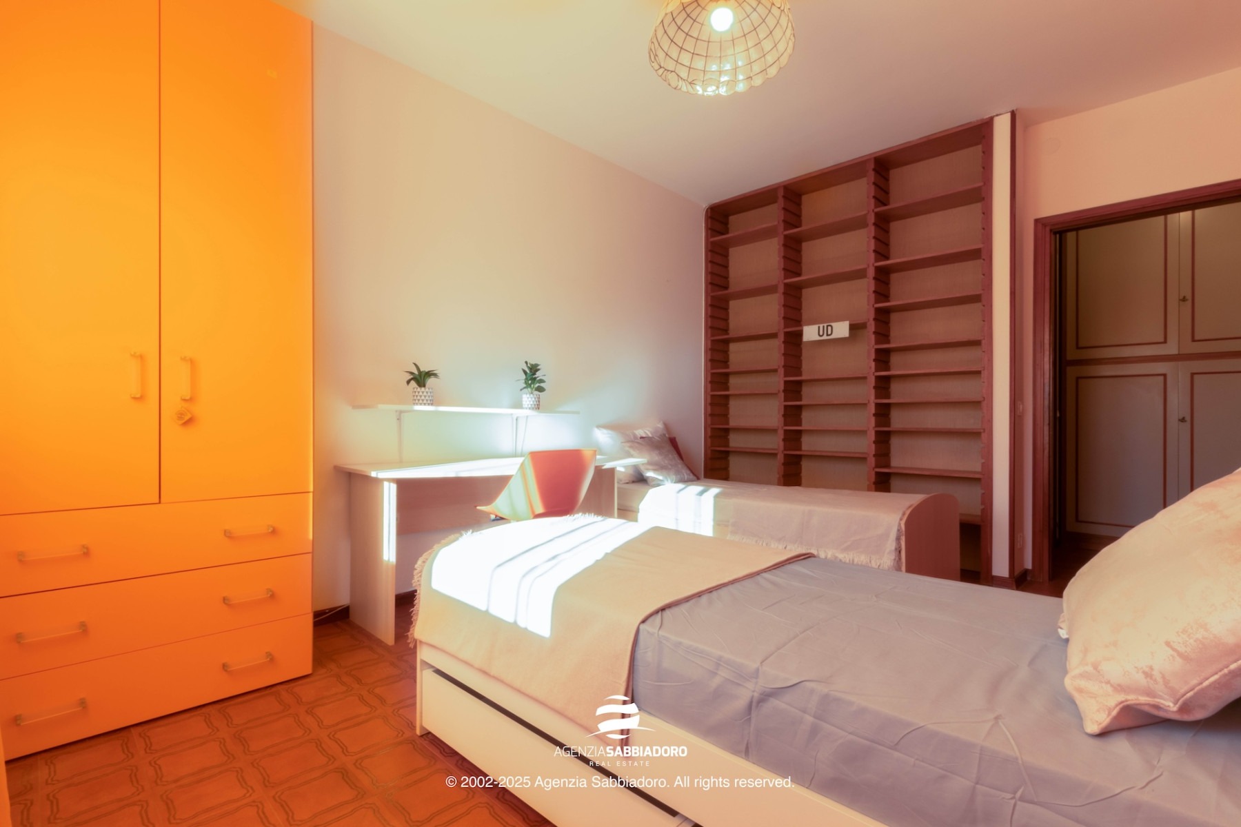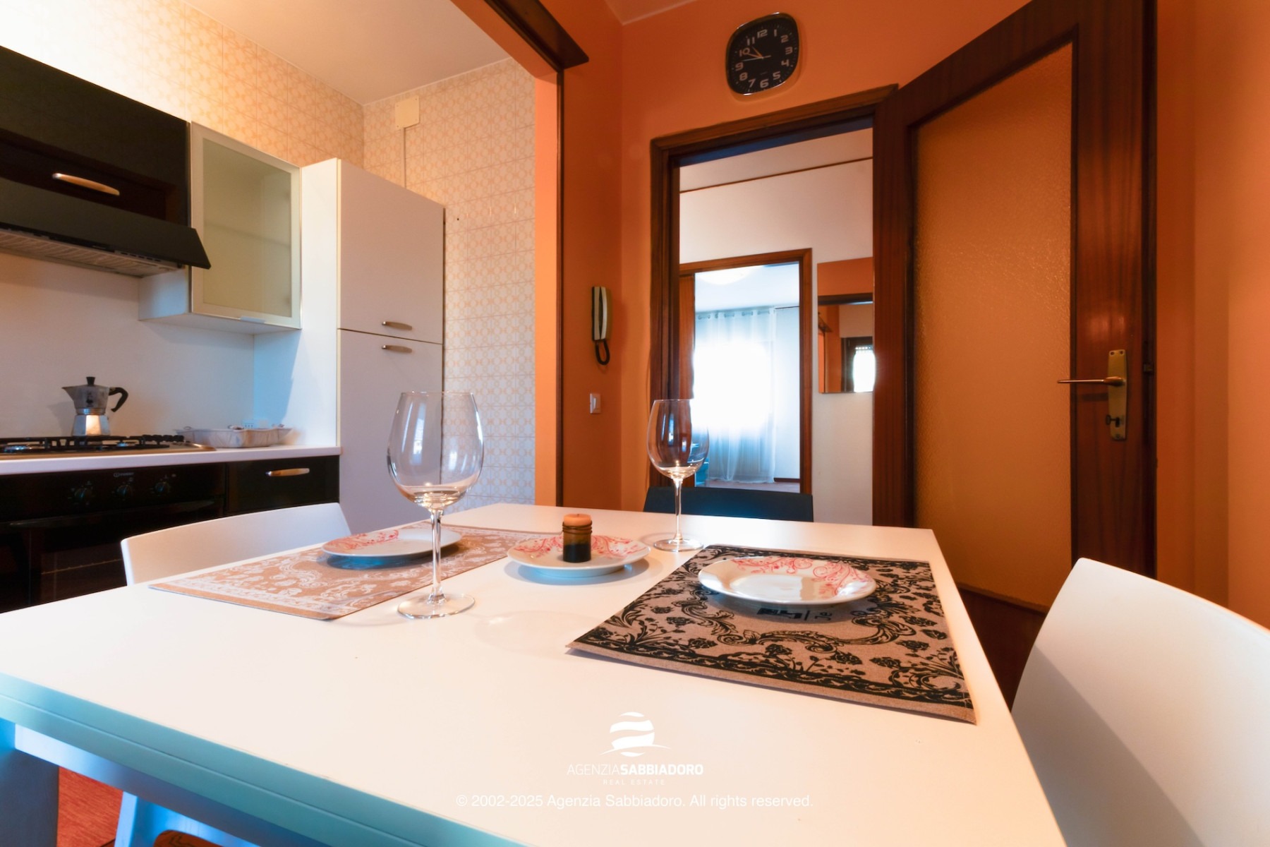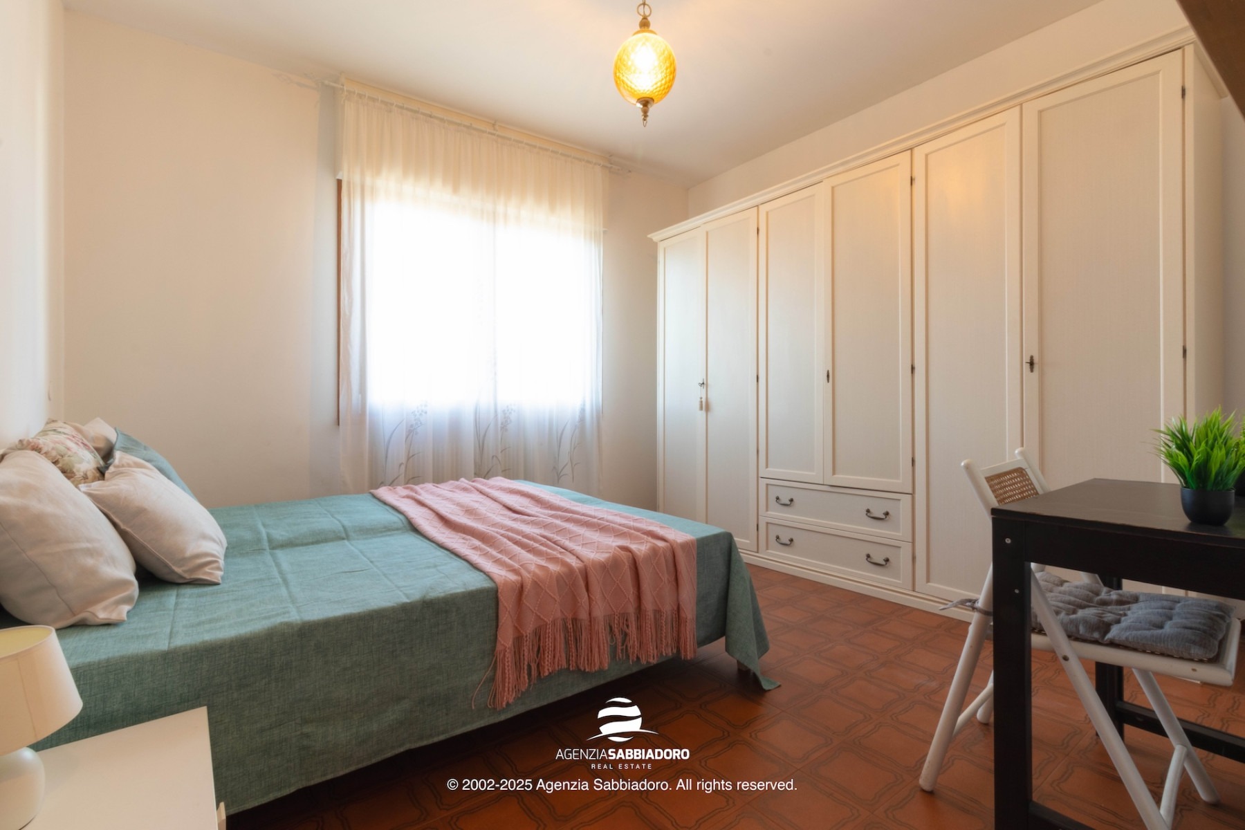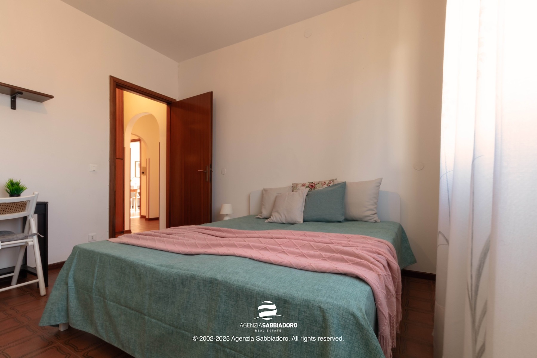 Gli spazi interni sono generosi e versatili, con armadiature a muro ricavate nei disimpegni, ideali per contenere senza ingombrare.