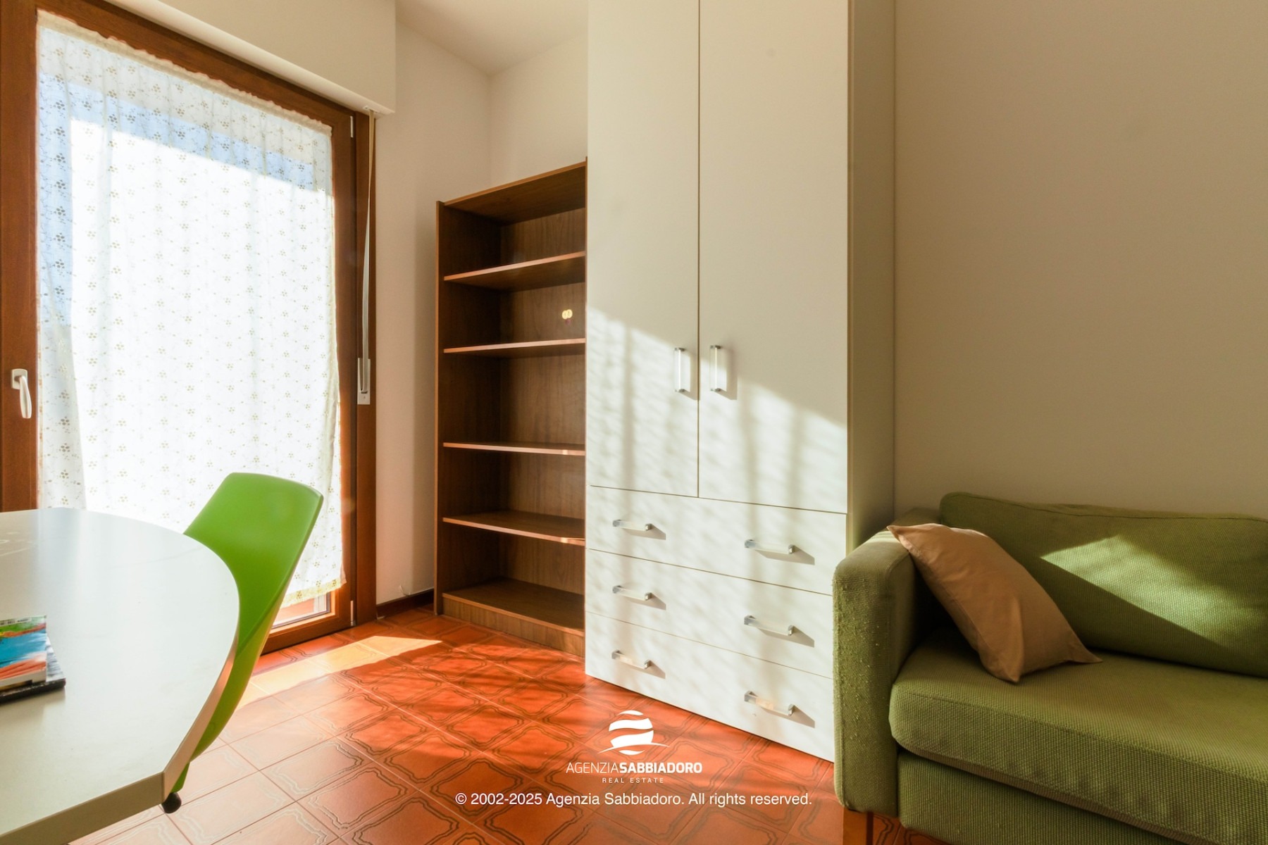 Grazie alla tripla esposizione (sud, ovest e nord), l’appartamento è ben arieggiato e luminoso durante tutta la giornata.